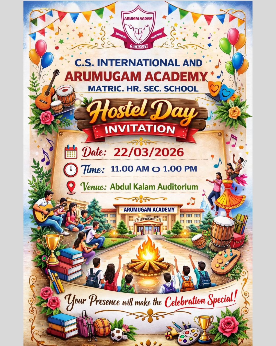 Arumugam Academy offers a complete schooling journey from Pre-KG to Standard XII, with a strong academic foundation and co-curricular development.